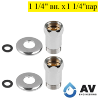 AV Engineering 1 1/4" вн. х 1 1/4" нар. американка угловая для полотенцесушителя, служит для подключения полотенцесушителя. Фитинг латунный, полированный хромом для полотенцесушителей.