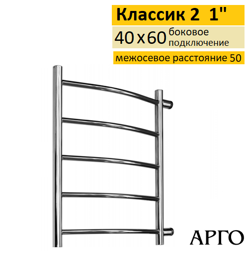 Купить полотенцесушитель водяной Арго Классик 2 40-60 5Д 1" с боковым подключением можно в магазине tm24.by или заказать доставку по всей стране. У нас большой ассортимент полотенцесушителей Арго серии Классик.