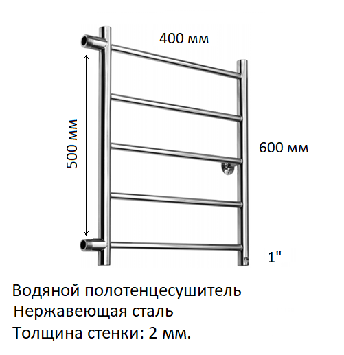 3. Размеры: 400 х 600 мм. Диаметр: 1" (Ду-25).