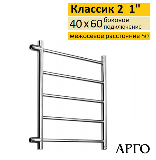 Полотенцесушитель водяной Арго Классик 2 40-60 5П 1 боковое подключение-50