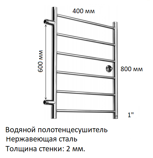 3. Размеры: 400 х 800 мм. Диаметр: 1" (Ду-25).