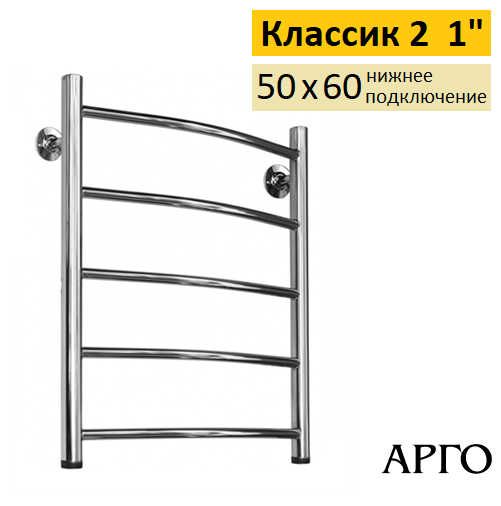Арго Классик 2 50-60 5Д 1 полотенцесушитель водяной, служит для сушки полотенец и вещей, а также помогает избегать повышенной влажности в ванной. Размер 500х600 мм, диаметр трубы 1".