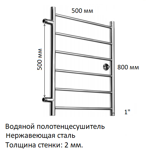 3. Размеры: 500 х 800 мм. Диаметр: 1" (Ду-25).