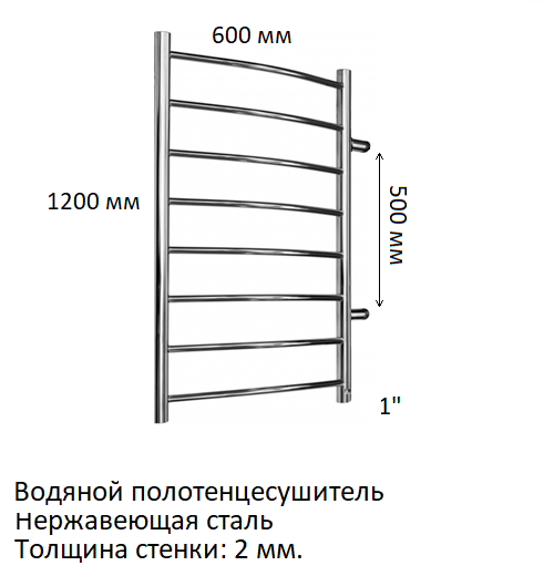 3. Размеры: 600 х 1200 мм. Диаметр: 1" (Ду-25).