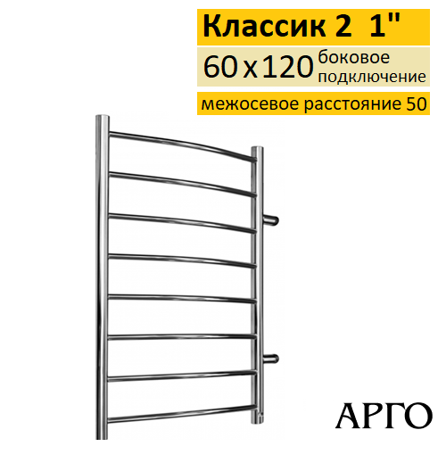Купить полотенцесушитель водяной Арго Классик 2 60-120 8Д 1" с боковым подключением можно в магазине tm24.by или заказать доставку по всей стране. У нас большой ассортимент полотенцесушителей Арго серии Классик.