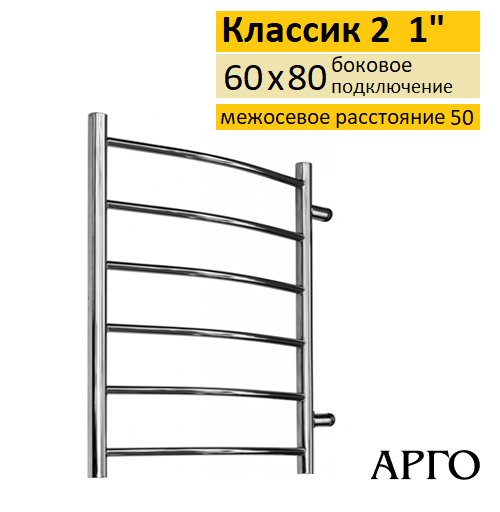 Купить полотенцесушитель водяной Арго Классик 2 60-80 6Д 1" с боковым подключением можно в магазине tm24.by или заказать доставку по всей стране. У нас большой ассортимент полотенцесушителей Арго серии Классик.