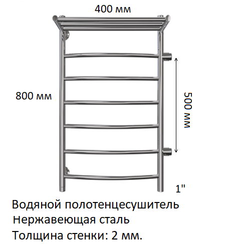 3. Размеры: 400 х 800 мм. Диаметр: 1" (Ду-25).