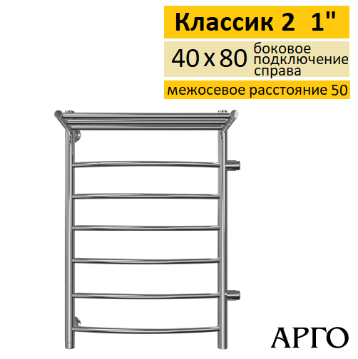 Полотенцесушитель водяной Арго Классик 2 с полкой 40-80 6Д 1 боковое подключение справа-50