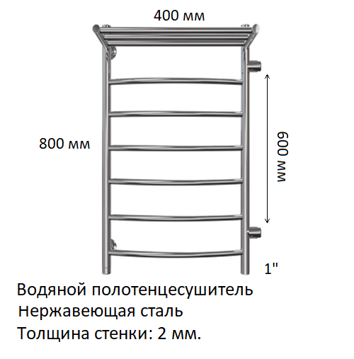 3. Размеры: 400 х 800 мм. Диаметр: 1" (Ду-25).