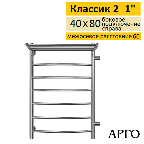 Полотенцесушитель водяной Арго Классик 2 с полкой 40-80 6Д 1 боковое подключение справа-60