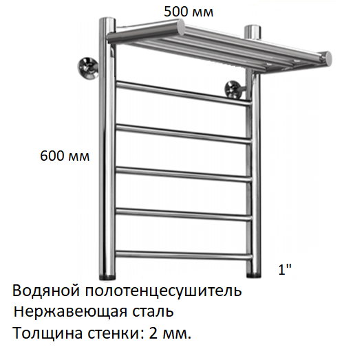 Арго Классик 2 с полкой 50-60 5П 1 полотенцесушитель водяной, служит для сушки полотенец и вещей, а также помогает избегать повышенной влажности в ванной. Размер 500х600 мм, диаметр трубы 1".