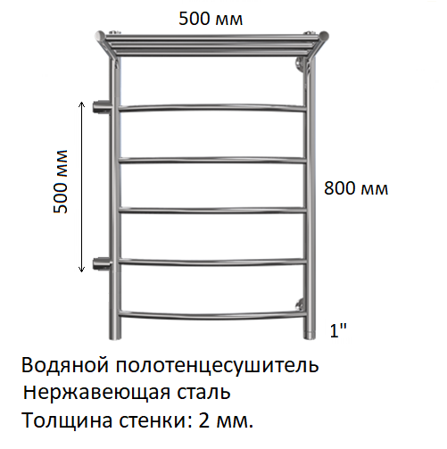 3. Размеры: 500 х 800 мм. Диаметр: 1" (Ду-25).