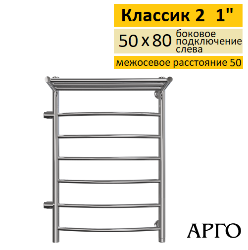 Полотенцесушитель водяной Арго Классик 2 с полкой 50-80 6Д 1 боковое подключение слева-50
