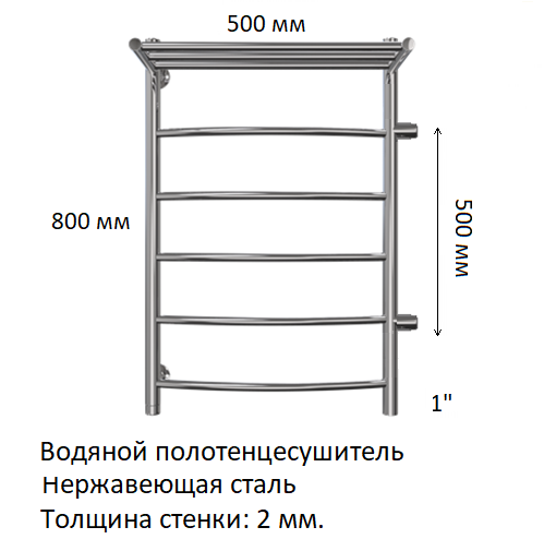 3. Размеры: 500 х 800 мм. Диаметр: 1" (Ду-25).