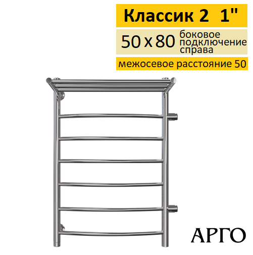 Полотенцесушитель водяной Арго Классик 2 с полкой 50-80 6Д 1 боковое подключение справа-50