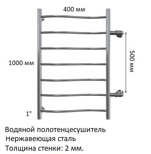 3. Размеры: 400 х 1000 мм. Диаметр: 1" (Ду-25).