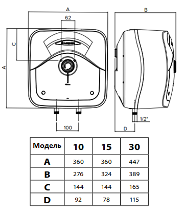 1. Модель с установкой под раковиной. Объём 30 литров.
