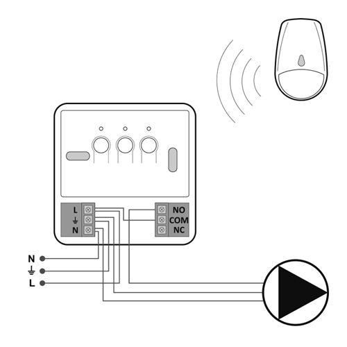 Включает рециркуляционный насос, когда датчик движения обнаруживает активность пользователя в помещении (например, в ванной комнате).