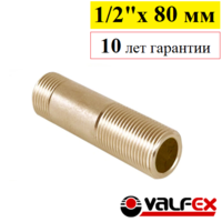 Бочонок Valfex 1/2х80 мм латунь VF.652.L.012.080, резьбовой фитинг, служит для герметичного соединения двух участков труб, а также используется при подключении счётчиков или фильтров.