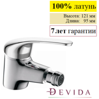 Devida Ersa DVL0351-02 cмеситель для биде. Смеситель однорычажный для установки на биде с верхним расположением ручки и креплением на шпильке. Длина излива по осям корпус-аэратор 95 мм. В комплектацию входит качественная подводка Devida длиной 50 см с оплеткой из фибронейлона. Материал корпуса - латунь. Размер картриджа 40 мм.