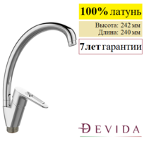 Материалы, используемые в конструкции смесителей DEVIDA, при соприкосновении с питьевой водой, даже при высокой температуре и давлении, не выделяют частиц, представляющих опасность для здоровья человека, а также не меняют физико-химические свойства питьевой воды.