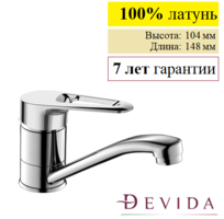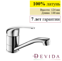 Devida Luro DVL0103-01 cмеситель для кухни с коротким изливом. Смеситель однорычажный для установки на мойку с верхним расположением ручки и креплением на шпильке. Поворотный излив, длина которого 148 мм, высота 75 мм. В комплектацию входит качественная подводка Devida длиной 50 см с оплеткой из фибронейлона. Материал корпуса - латунь. Размер картриджа 40 мм. Смеситель с коротким изливом можно использовать как для кухни, так и для раковины в ванной комнате или техническом помещении.