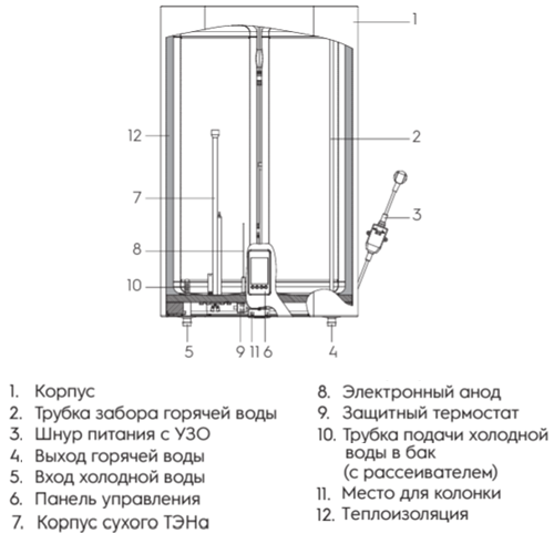 8. Внутренний бак из нержавеющей стали, теплоизоляция 35 мм.