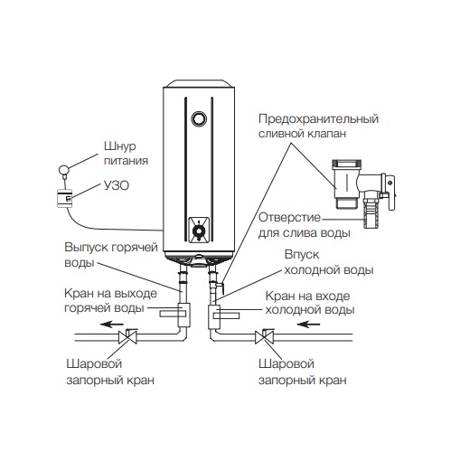 Водонагреватели серии AXIOmatic имеют предохранительный клапан с функцией слива воды, который защищает прибор от избыточного давления внутри бака.