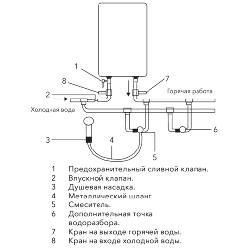 7. Максимальное давление в водопроводе: 6 бар.
