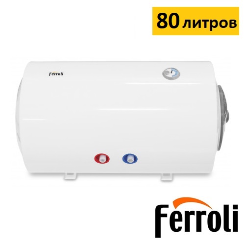 Электрический водонагреватель Ferroli E-glasstech HBO 80 в горизонтальном исполнении, предназначен для приготовления горячей воды и использования ее в бытовых целях, бак выполнен из стали, а само покрытие выполнено из голубого стеклофарфора, объём 80 литров, снабжен механическим термостатом для регулировки температуры. Мощность водонагревателя - 1500 Вт. Температура нагрева воды от 35°C до 75°C. Максимальное давление в системе — 8 бар.