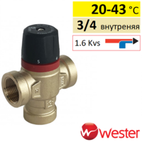 Купить Esbe VTA 322 термостатический смесительный клапан, регулировка температуры 20-43 °С, диаметр подключения 3/4" внутренняя резьба, можно в магазине tm24, осуществляем консультацию, продажу и доставку по всей стране.