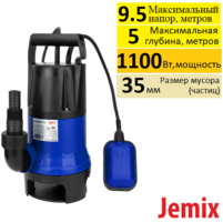 Jemix SUPERCUT-1500 фекальный погружной насос с мощным режущим ножом-измельчителем типа гриндер, применяется в бытовых целях для откачивания фекальных, дренажных, дождевых и грунтовых вод из затопленных подвальных помещений, отвода канализационных, фильтрационных, отработанных, сильно загрязненных с органическими включениями вод из сточных канав и бассейнов.