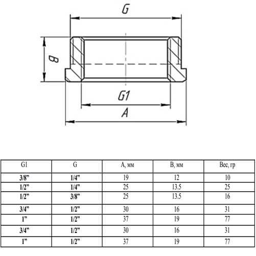 1. Диаметр: 1х1/2, наружная-внутренняя резьба.