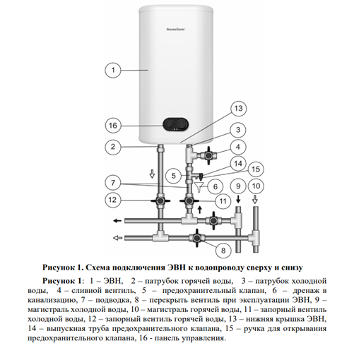 17. Комплект поставки: водонагреватель, предохранительный клапан 1 шт., анкеры 1 упак., руководство по эксплуатации 1 шт., упаковка 1 шт.
