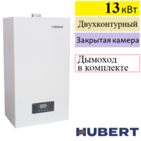 Hubert AGB 13 DP газовый котёл мощностью 13 кВт, что позволит отапливать помещение площадью до 130 м2, а также приготовить горячую воду в проточном режиме производительностью 10.3 л/минуту. Закрытая камера сгорания, раздельные теплообменники, настенный монтаж.