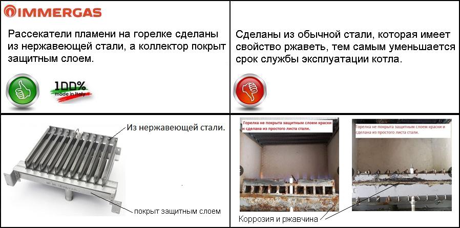 В котле Immergas установлена итальянская горелка с рассекателями пламени из нержавеющей стали, а сам коллектор покрыт защитным слоем от коррозии и ржавчины.