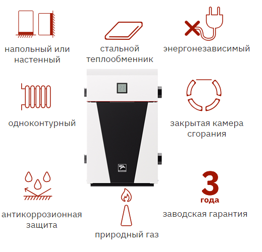 1. Мощность 20 кВт, одноконтурный, закрытая камера сгорания.