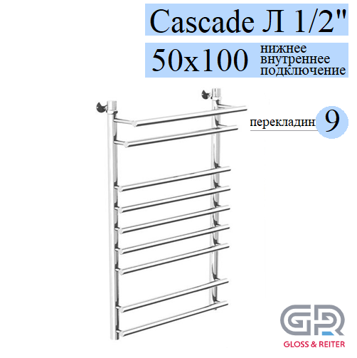 Gloss & Reiter Cascade Л 50х100 К9 полотенцесушитель водяной, 9 перекладин, формы Лесенка в магазине tm24.by, большой ассортимент, доставка, с гарантией от производителя.