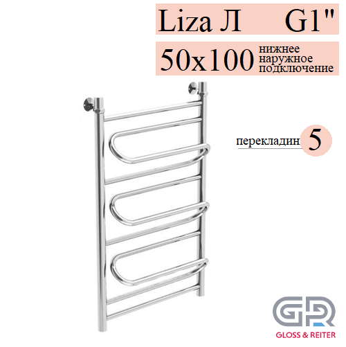 Gloss & ReiterLiza Л 50х100 Л2 Z3 G1 полотенцесушитель водяной, 5 перекладин, размер 500х1000 мм, диаметр ДУ-25, выполняет сразу несколько функций - сушка мокрых полотенец и одежды, помогает избегать повышенной влажности в ванной; обеспечивает стабильную работу системы горячего водоснабжения ("компенсирующая петля"); работает как батарея отопления.