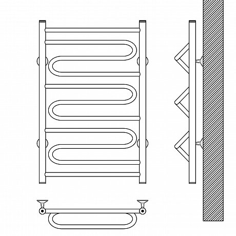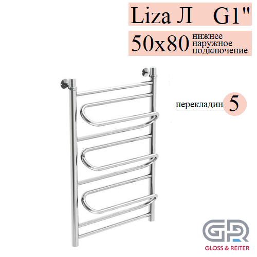 Gloss & Reiter Liza Л 50х80 Л2 Z3 G1 полотенцесушитель водяной, 5 перекладин, размер 500х800 мм, диаметр ДУ-25, выполняет сразу несколько функций - сушка мокрых полотенец и одежды, помогает избегать повышенной влажности в ванной; обеспечивает стабильную работу системы горячего водоснабжения ("компенсирующая петля"); работает как батарея отопления.