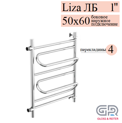 Gloss & Reiter Liza LeRi ЛБ 50х60 Л2 Z2 полотенцесушитель водяной, 4 перекладины, размер 500х600 мм, диаметр ДУ-25, выполняет сразу несколько функций - сушка мокрых полотенец и одежды, помогает избегать повышенной влажности в ванной; обеспечивает стабильную работу системы горячего водоснабжения ("компенсирующая петля"); работает как батарея отопления.