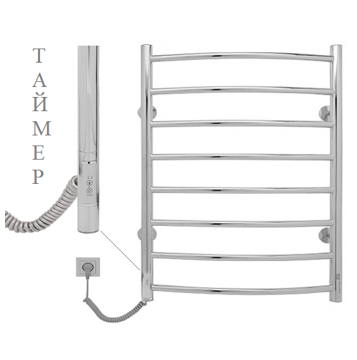 Gloss & Reiter Raduga Э2 Л 50х80 Д8 Л с таймером полотенцесушитель электрический, 8 перекладин, формы Лесенка в магазине tm24.by, большой ассортимент, доставка, с гарантией от производителя.
