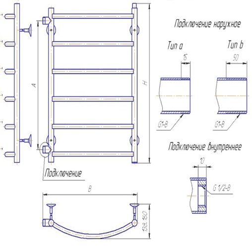 1. Водяной полотенцесушитель формы Лесенка серии " Raduga Л".
