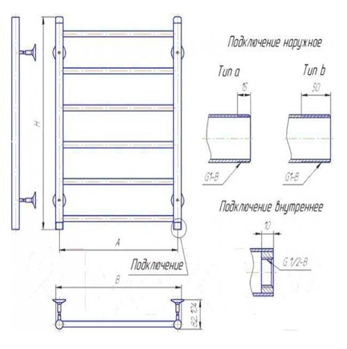 Gloss & Reiter Skif combi Л 50х100 С4 Л5 G1 полотенцесушитель водяной, 5 перекладин, формы Лесенка в магазине tm24.by, большой ассортимент, доставка, с гарантией от производителя.