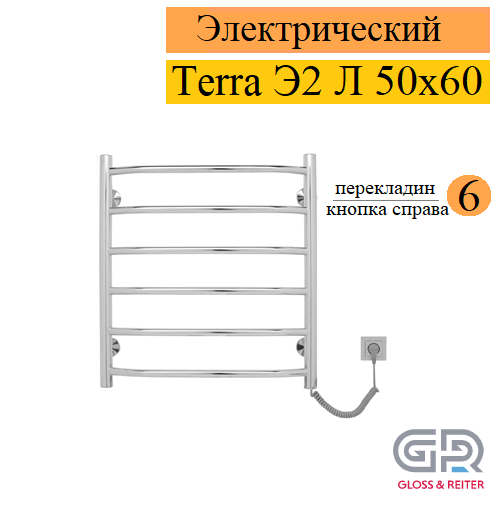 Gloss & Reiter Terra Э2 Л 50x60 Т6 П с кнопкой полотенцесушитель электрический, 6 перекладин, формы Лесенка в магазине tm24.by, большой ассортимент, доставка, с гарантией от производителя.