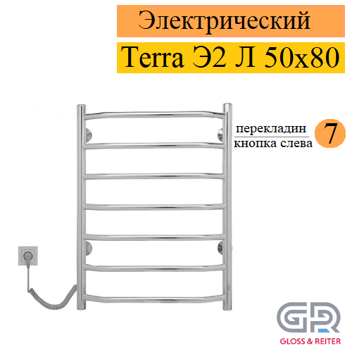 Gloss & Reiter Terra Э2 Л 50x80 Т7 Л с кнопкой полотенцесушитель электрический, 7 перекладин, формы Лесенка в магазине tm24.by, большой ассортимент, доставка, с гарантией от производителя.