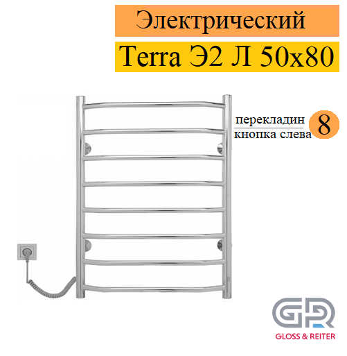 Gloss & Reiter Terra Э2 Л 50x80 Т8 Л с кнопкой полотенцесушитель электрический, 8 перекладин, формы Лесенка в магазине tm24.by, большой ассортимент, доставка, с гарантией от производителя.