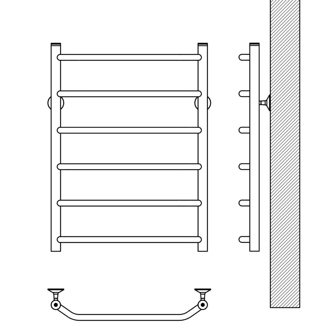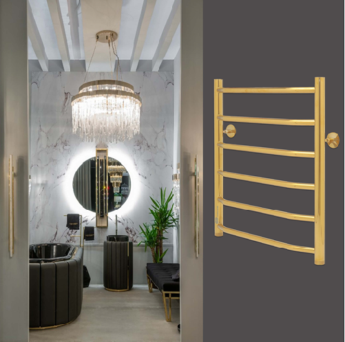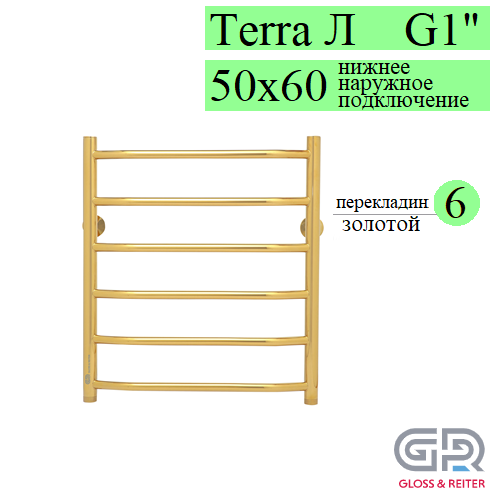 Gloss & Reiter Terra Л 50х60 Т6 G1 Gold полотенцесушитель водяной, 6 перекладин, формы Лесенка в магазине tm24.by, большой ассортимент, доставка, с гарантией от производителя.