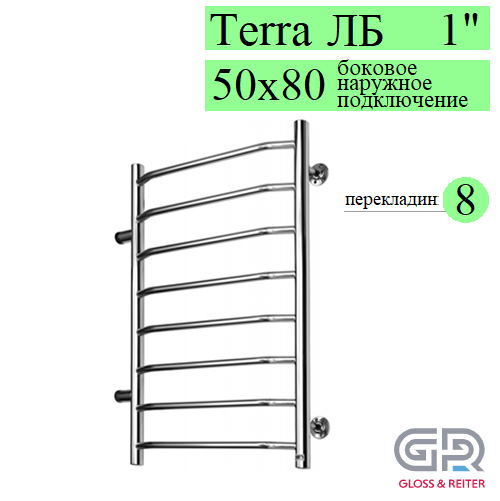 Gloss & Reiter Terra LeRi ЛБ 50х80 Т8 полотенцесушитель водяной, 8 перекладин, формы Лесенка в магазине tm24.by, большой ассортимент, доставка, с гарантией от производителя.