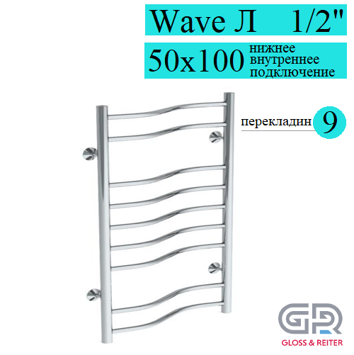 Gloss & Reiter Wave Л 50x100 В9 полотенцесушитель водяной, 9 перекладин, формы Лесенка в магазине tm24.by, большой ассортимент, доставка, с гарантией от производителя.